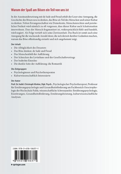 In der Auseinandersetzung mit de Sade und Freud erhält der Leser eine Anregung, die Geschichte des Bösen neu zu denken, das Böse als Teil des Menschen und seiner Kultur zu denken. Neben Errungenschaften wie Demokratie, Menschenrechten und persönlicher Freiheit wird nämlich zu oft vergessen, dass dieser Kultur auch Schattenseiten innewohnen. Dass der Mensch fragmentiert ist, widersprüchlich fühlt und handelt, wird negiert. Als Folge vertieft sich seine Zerrissenheit. Das Buch ist somit auch eine Anregung für die wachsende Anzahl derer, die sich derzeit darüber Gedanken machen, warum das Böse offenkundig erstarkt und sich ungehemmt zeigt.