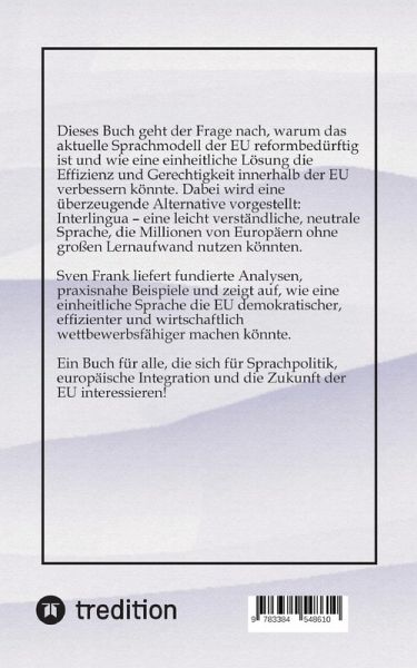 Dieses Buch geht der Frage nach, warum das aktuelle Sprachmodell der EU reformbedürftig ist und wie eine einheitliche Lösung die Effizienz und Gerechtigkeit innerhalb der EU verbessern könnte. Dabei wird eine überzeugende Alternative vorgestellt: Interlingua - eine leicht verständliche, neutrale Sprache, die Millionen von Europäern ohne großen Lernaufwand nutzen könnten.Sven Frank liefert fundierte Analysen, praxisnahe Beispiele und zeigt auf, wie eine einheitliche Sprache die EU demokratischer, effizienter und wirtschaftlich wettbewerbsfähiger machen könnte.Ein Buch für alle, die sich für Sprachpolitik, europäische Integration und die Zukunft der EU interessieren!