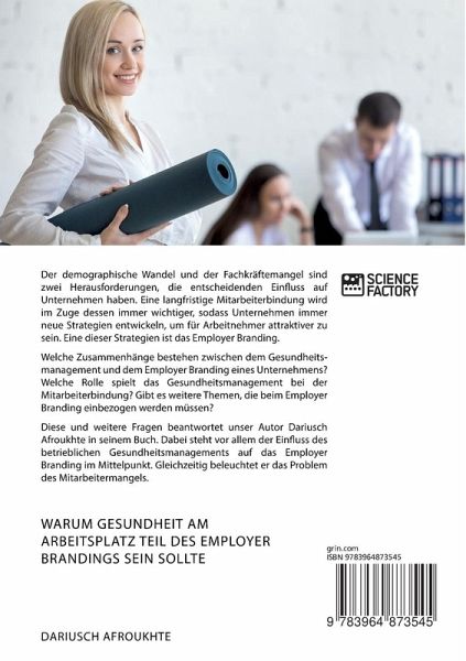 Der demographische Wandel und der Fachkräftemangel sind zwei Herausforderungen, die entscheidenden Einfluss auf Unternehmen haben. Eine langfristige Mitarbeiterbindung wird im Zuge dessen immer wichtiger, sodass Unternehmen immer neue Strategien entwickeln, um für Arbeitnehmer attraktiver zu sein. Eine dieser Strategien ist das Employer Branding.Welche Zusammenhänge bestehen zwischen dem Gesundheitsmanagement und dem Employer Branding eines Unternehmens? Welche Rolle spielt das Gesundheitsmanagement bei der Mitarbeiterbindung? Gibt es weitere Themen, die beim Employer Branding einbezogen werden müssen?Diese und weitere Fragen beantwortet unser Autor Dariusch Afroukhte in seinem Buch. Dabei steht vor allem der Einfluss des betrieblichen Gesundheitsmanagements auf das Employer Branding im Mittelpunkt. Gleichzeitig beleuchtet er das Problem des Mitarbeitermangels.Aus dem Inhalt: -war for talents;-Personalführung;-Mitarbeitermanagement;-Personalmangel;-Arbeitgeberattraktivität