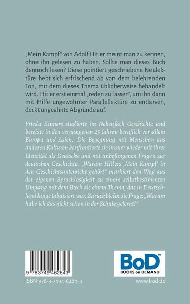 Es gibt Bücher, die wir zu kennen meinen, ohne sie gelesen zu haben. Dazu gehört sicher "Mein Kampf" von Adolf Hitler. Sollte man dieses Buch dennoch lesen? Die hier vorgelegte Neulektüre nähert sich Hitlers Buch mit dem vollen Bewusstsein seiner Wirkungsgeschichte und wirft gleichzeitig einen unverstellten Blick auf den Text, indem die Autorin mit eigenen Fragen an diesen herangeht und zu plausiblen Schlussfolgerungen gelangt. Die pointierte und persönliche Schreibweise setzt dazu einen erfrischenden Gegenakzent zu diesem üblicherweise in einem belehrenden Ton behandelten Thema. Hitler erst einmal "reden zu lassen", um ihn dann mit Hilfe ungewohnter Parallellektüre zu entlarven, ist ein Verfahren, das ungeahnte Abgründe aufdeckt.