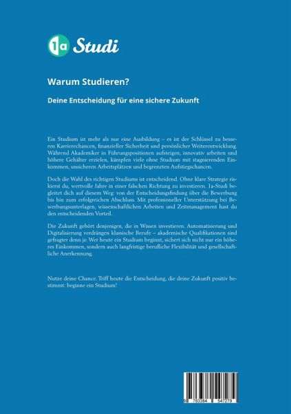 Dieses Buch zeigt auf, warum ein Studium eine der wichtigsten Entscheidungen für die persönliche und berufliche Zukunft ist. Es beleuchtet die Vorteile akademischer Bildung, vergleicht berufliche Perspektiven mit und ohne Studium und gibt konkrete Hilfestellungen für die Studienwahl. Neben der Finanzierung eines Studiums werden auch emotionale und gesellschaftliche Auswirkungen thematisiert.
