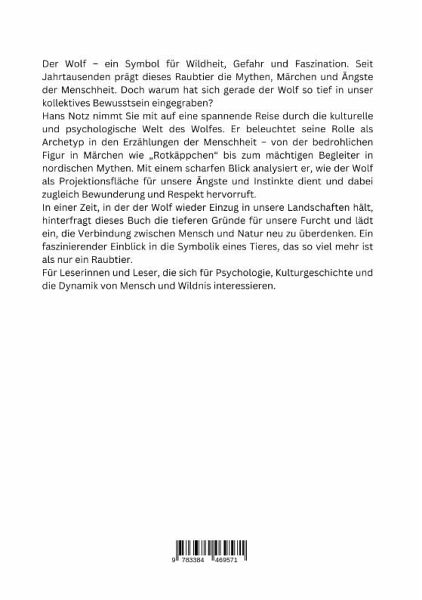 Der Wolf - ein Symbol für Wildheit, Gefahr und Faszination. Seit Jahrtausenden prägt dieses Raubtier die Mythen, Märchen und Ängste der Menschheit. Doch warum hat sich gerade der Wolf so tief in unser kollektives Bewusstsein eingegraben?Hans Notz nimmt Sie mit auf eine spannende Reise durch die kulturelle und psychologische Welt des Wolfes. Er beleuchtet seine Rolle als Archetyp in den Erzählungen der Menschheit - von der bedrohlichen Figur in Märchen wie "Rotkäppchen" bis zum mächtigen Begleiter in nordischen Mythen. Mit einem scharfen Blick analysiert er, wie der Wolf als Projektionsfläche für unsere Ängste und Instinkte dient und dabei zugleich Bewunderung und Respekt hervorruft.In einer Zeit, in der der Wolf wieder Einzug in unsere Landschaften hält, hinterfragt dieses Buch die tieferen Gründe für unsere Furcht und lädt ein, die Verbindung zwischen Mensch und Natur neu zu überdenken. Ein faszinierender Einblick in die Symbolik eines Tieres, das so viel mehr ist als nur ein Raubtier.Für Leserinnen und Leser, die sich für Psychologie, Kulturgeschichte und die Dynamik von Mensch und Wildnis interessieren.
