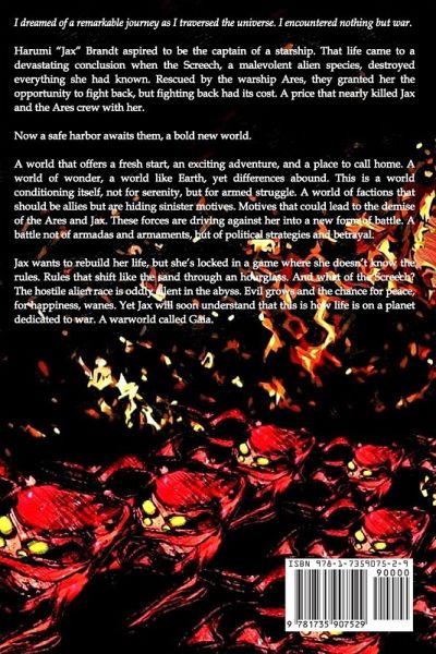 I dreamed of a remarkable journey as I traversed the universe. I encountered nothing but war. Harumi "Jax" Brandt aspired to be the captain of a starship. That life came to a devastating conclusion when the Screech, a malevolent alien species, destroyed everything she had known. Rescued by the warship Ares, they granted her the opportunity to fight back, but fighting back had its cost. A price that nearly killed Jax and the Ares crew with her. Now a safe harbor awaits them, a bold new world. A world that offers a fresh start, an exciting adventure, and a place to call home. A world of wonder, a world like Earth, yet differences abound. This is a world conditioning itself, not for serenity, but for armed struggle. A world of factions that should be allies but are hiding sinister motives. Motives that could lead to the demise of the Ares and Jax. These forces are driving against her into a new form of battle. A battle not of armadas and armaments, but of political strategies and betrayal. Jax wants to rebuild her life, but she's locked in a game where she doesn't know the rules. Rules that shift like the sand through an hourglass. And what of the Screech? The hostile alien race is oddly silent in the abyss. Evil grows and the chance for peace, for happiness, wanes. Yet Jax will soon understand that this is how life is on a planet dedicated to war. A warworld called Gaia.