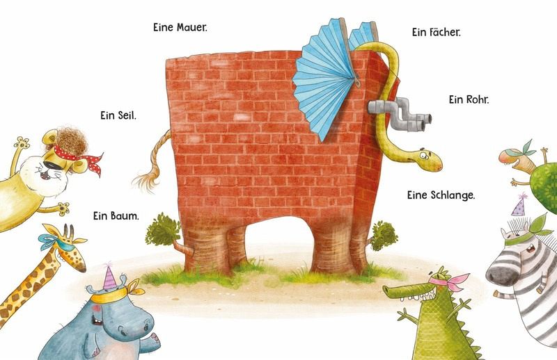 Alle und keiner ist die überraschende Auflösung. Denn ein stämmiges Bein fühlt sich wie ein Baum an, der feste Bauch wie eine Mauer, der bewegliche Rüssel eindeutig wie eine Schlange ... - aber alles zusammen ist es ein Elefant.