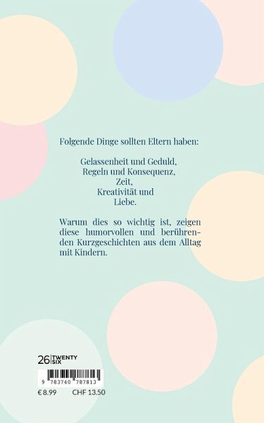 Folgende Dinge sollten Eltern haben: Gelassenheit und Geduld, Regeln und Konsequenz, Zeit, Kreativität und Liebe.Warum dies so wichtig ist, zeigen diese humorvollen und berührenden Kurzgeschichten aus dem Alltag mit Kindern.