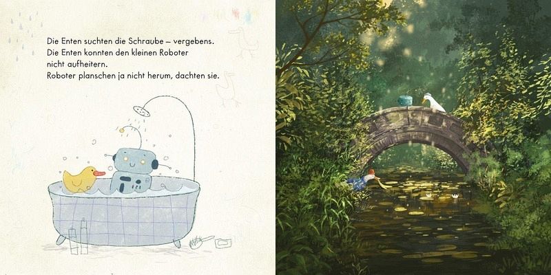 Dem kleinen Roboter fehlt seine Lieblingsschraube - und niemand kann ihn trösten: Nicht der Bär, nicht der Hase, nicht das Krokodil. Schließlich verstehen Roboter keine Witze. Und planschen auch nicht gerne herum. Oder? Der Biber hat eine Idee: Er schnitzt dem Roboter eine neue Schraube und schenkt ihm darüber hinaus alles, was ihm guttut - Nähe, Spaß, Geborgenheit. Eine herzerwärmende Geschichte über Trost, Freundschaft und Empathie.
