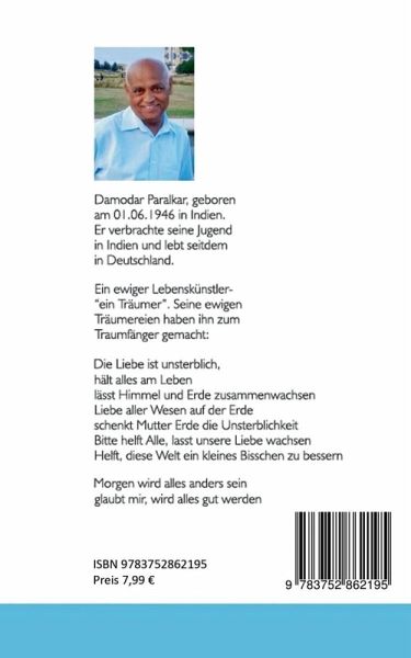 Ein ewiger Lebenskünstler - "ein Träumer". Seine ewigen Träumereien haben ihn zum Traumfänger gemacht.Die Liebe ist unsterblich, hält alles am Leben, lässt Himmel und Erde zusammenwachsen. Liebe aller Wesen auf der Erde schenkt Mutter Erde die Unsterblichkeit. Bitte helft alle, lasst unsere Liebe wachsen. Helft, diese Welt ein kleines bisschen zu verbessern.Morgen wird alles anders sein, glaubt mir, es wird gut gehen.