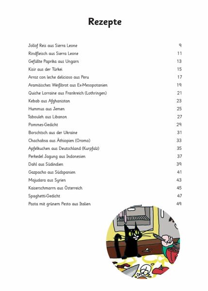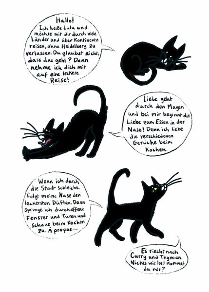 Platsch. Schon hat Katze Lulu einen Klecks Hummus im Gesicht. Oh, und wie das duftet - Milchreis mit Orangenduft, Zimt und Nelken? Passt das zusammen? Da möchte die neugierige Katze mithelfen. Gemeinsam mit Lulu können wir zusammen kochen und dabei in zahlreiche Länder reisen - ohnedie eigene Küche zu verlassen!Kinder haben für euch ihre Lieblingsrezepte zusammengestellt, die sie zu Hause kochen. Auch haben sie Lebensmittel gezeichnet, die als grafische Elemente in das Buch mit einfließen. Mit fantasievollen Bildern und sogar Gedichten lädt das Buch zu einem leckeren Spaziergang durch unterschiedlichste Länder und tausende Geschmacksrichtungen ein. Katze Lulu ist die Protagonistin des Spaziergangs, der Weg ist immer der Nase nach. Alle Rezepte haben eine dazu passenden illustrierten Blick in die jeweilige Küche, in dem Katze Lulu natürlich auftaucht. Die Illustrationen sind mit knalligen und bunten Farben als Wimmelbilder gestaltet, in denen sehr viel zu entdecken ist. Am Schlusstreffen sich die Personen aus dem Kochbuch zu einem gemeinsamen Picknick.Seid ihr neugierig und hungrig wie Lulu? Dann kommt mit auf diese Reise!