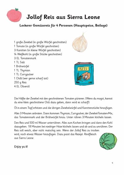 Über den Tellerrand kochen Heidelberg e.V. organisiert mit ehrenamtlichem Engagement Kochevents. Bei den Anlässen wird gemeinsam geschnippelt, gekocht und gegessen. So entstehen Begegnungen. Menschen, die einander sonst nicht treffen, sitzen zusammen an einem Tisch. Essen verbindet! - Bei uns kannst du neue Freundschaften knüpfen und triffst auf offene Ohren für deine Erfahrungen. Sandra Stürzel-Prang ist begeisterte Grundschullehrerin. Das interkulturelle Kochbuch-Projekt entstand im Rahmen ihrer Schulseelsorger*innenfortbildung und bestand zunächst aus zwei Teilen: das Sammeln von leckeren Rezepten aus aller Welt aus der Schulgemeinschaft und aus dem interkulturellen Frühstück in der Albert-Schweitzer-Schule im Rahmen der "Internationalen Wochen gegen Rassismus". Durch Zeichnungen und Comics hält Sarah Blaser alle Details fest, die ihr im Alltag begegnen. Immer mit Bleistiften, Filzstiften, Pinseln oder Tablet ausgestattet, skizziert sie die Figuren ihres Alltags und ihre fantasievollen und kreativen Gedanken. Mehr auf hellopazuzu.com.