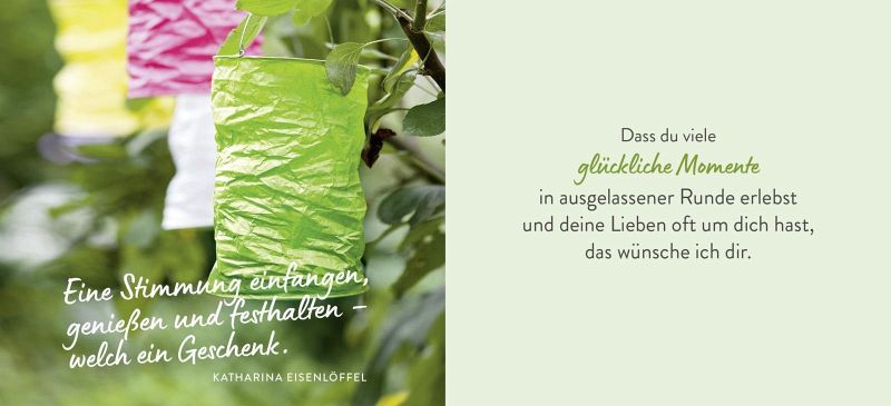 48-seitiges Buch im handlichen Format (11,3 x 12,3 cm)Stimmungsvolle Fotografien, Wünsche zum Geburtstag und inspirierende ZitateHochwertiges Cover mit robuster Oberflächenveredelung, schmutz- und kratzunempfindlichIdeal als Zusatzgeschenk oder als Ersatz für eine Grußkarte