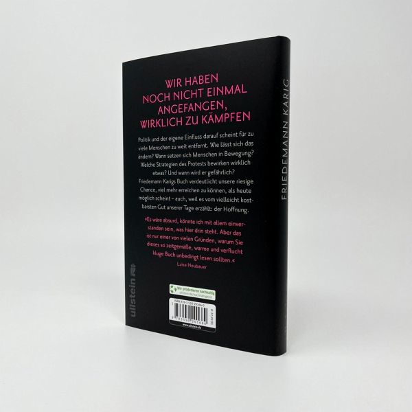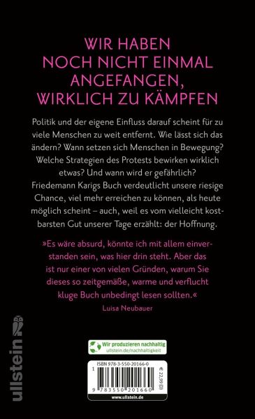 Der Mensch kann brutal egoistisch sein, selbstgerecht und rücksichtslos. Dennoch: Wenn erst einmal eine kleine kritische Masse für ein größeres Ziel in Bewegung kommt, kann sie unaufhaltsam werden in ihrer Wirkmacht und revolutionäre Veränderungen schaffen. Kaum eine Errungenschaft unserer Demokratien wäre ohne kollektiven Mut denkbar gewesen. Viele der heute drängenden Kämpfe - allen voran den um unsere Lebensgrundlagen - haben die meisten jedoch nicht einmal begonnen. Politik und die eigene Einwirkung darauf scheint für zu viele Menschen zu weit entfernt. Wie lässt sich das ändern? Dafür müssen wir uns entscheidenden Fragen widmen: Was kann und will Aktivismus und Protest? Welche Mechanismen stehen dahinter? Wie organisiert sich effizientes Engagement? Wann setzen sich Menschen in Bewegung? Und wie viele müssen sich trauen, um die anderen mitzureißen? Mit Verve und Humor durchmisst Friedemann Karig Theorie und Praxis des Aufbegehrens. Er betrachtet historische wie aktuelle Protestbewegungen, deren Beispiele zeigen, dass hartnäckiger Protest und ziviler Ungehorsam Fundamentales ausrichten können. Karigs Buch verdeutlicht unsere riesige Chance, viel mehr erreichen zu können, als heute möglich scheint - auch, weil es vom vielleicht kostbarsten Gut unserer Tage erzählt: der Hoffnung.