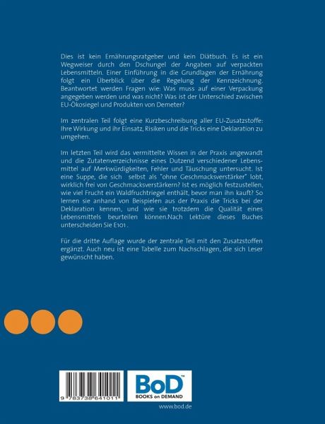 Dies ist kein Ernährungsratgeber und kein Diätbuch. Es ist ein Wegweiser durch den Dschungel der Angaben auf verpackten Lebensmitteln. Einer Einführung in die Grundlagen der Ernährung folgt ein Überblick über die Regelung der Kennzeichnung. Beantwortet werden Fragen wie: Was muss auf einer Verpackung angegeben werden und was nicht? Was ist der Unterschied zwischen EU-Ökosiegel und Produkten von Demeter? Im zentralen Teil folgt eine Kurzbeschreibung aller EU-Zusatzstoffe: Ihre Wirkung und ihr Einsatz, Risiken und die Tricks eine Deklaration zu umgehen. Im letzten Teil wird das vermittelte Wissen in der Praxis angewandt und die Zutatenverzeichnisse eines Dutzend verschiedener Lebensmittel auf Merkwürdigkeiten, Fehler und Täuschung untersucht. Ist eine Suppe, die sich selbst als "ohne Geschmacksverstärker" lobt, wirklich frei von Geschmacksverstärkern? Ist es möglich festzustellen, wie viel Frucht ein Waldfruchtriegel enthält, bevor man ihn kauft? So lernen sie anhand von Beispielen aus der Praxis die Tricks bei der Deklaration kennen, und wie sie trotzdem die Qualität eines Lebensmittels beurteilen können.Nach Lektüre dieses Buches unterscheiden Sie E101 von E122, fallen nicht mehr auf jedes Werbeversprechen herein und können Sie schon anhand des Zutatenverzeichnisses erkennen, ob ein "Premium Produkt" wirklich besser als die Standardware ist.Der Lebensmittelchemiker Bernd Leitenberger beschäftigt sich seit Jahren mit falschen Aussagen in der Werbung. In diesem Buch greift er zum einen einige auffällige Beispiele auf, um zu zeigen, wie der Verbraucher getäuscht werden soll. Zum Anderen vermittelt er auch eine solide Einführung in das Lebensmittelrecht und erklärt, was sich hinter den E-Nummern verbirgt.Für die dritte Auflage wurde der zentrale Teil mit den Zusatzstoffen ergänzt. Er wurde um die seit 2009 neu zugelassenen Zusatzstoffe ergänzt und aktualisiert. Auch neu ist eine Tabelle zum Nachschlagen, die sich Leser gewünscht haben. Neu ist auch eine Aufstellung der Zusatzstoffe, die für Biolebensmittel zugelassen sind, sowie ein Kapitel über die gesetzlichen Bestimmungen für Lightprodukte.