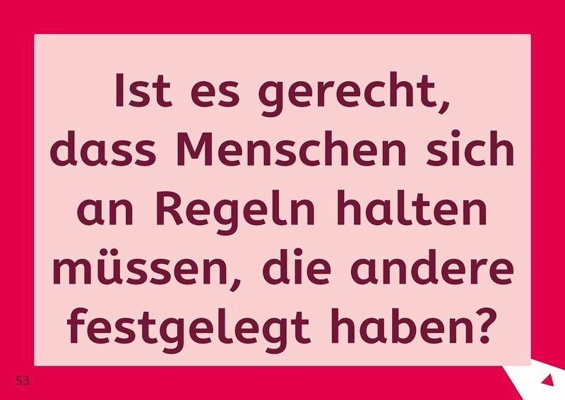 Demokratieerziehung leicht gemacht - 70 inspirierende Fragekarten für Kinder ab 6 Jahren, sowohl in der Schule als auch zu Hause +++Mit Impulskarten zur übergeordneten Frage "Was ist Gerechtigkeit?" können Kinder spielerisch argumentieren lernen. 70 (Impuls-)Fragen liefern spannende Themen zum Diskutieren mit Bezug zur kindlichen Lebenswirklichkeit.Ist es gerecht, wenn ältere Kinder auf ihre jüngeren Geschwister aufpassen müssen? Wie fühlt es sich an, ungerecht behandelt zu werden? Ruckzuck startet die Diskussion: Schüler und Schülerinnen üben den Meinungsaustausch und entwickeln ihre Empathiefähigkeit. Sie lernen, sich gegenseitig zuzuhören und andere Sichtweisen zu verstehen.Die Karten sind vielseitig einsetzbar und laden zum Debattieren im Unterricht, im Klassenrat oder auch zu Hause ein.Sie können beliebig oder nach Themengebieten wieGerechtigkeit im Kinderalltag,soziale Gerechtigkeit,Tierwohl und Natur,philosophische Fragengezogen werden. Dabei enthält die Kartenvorderseite die Frage, die Rückseite ist entsprechend bebildert.Besonderer Bonus: Booklet mit Hintergrundwissen und praktischen Anregungen zum Einsatz sowie ein Download mit sämtlichen Karten in digitaler Form für das Whiteboard o. Ä.Einfach und flexibel einsetzbar: zur Förderung des Demokratieverständnisses von Kindern unterschiedlicher Alters- und Entwicklungsstufen.So gelingt Demokratieerziehung - ganz spielerisch.