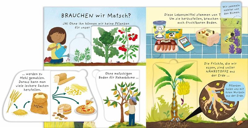 Was genau ist eigentlich Matsch? Woraus besteht er? Und warum brauchen wir ihn? Unter mehr als 35 Klappen erfährst du, was man mit Matsch alles machen kann und für wen und warum er so wichtig ist.