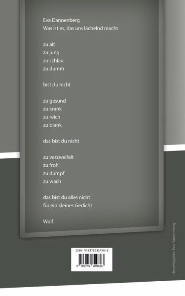 Mein Gedichtband WAS IST ES, DAS UNS LÄCHELND MACHT fand seinen Anfang 2020, als mit der covid Epidemie mein Berufsleben als Musikerin durch behördliches Untersagen von Konzerten und Unterrichtstätigkeit abrupt in die Monotonie das Alltags führte.  Auf wundersame Weise konnte ich meine Alltagsgefühle  und Gedanken in Versform bringen, vertonen, spielen und singen. Eine neue Leidenschaft aus einem Verlust war geboren.   Eva Dannenberg,  April 2025