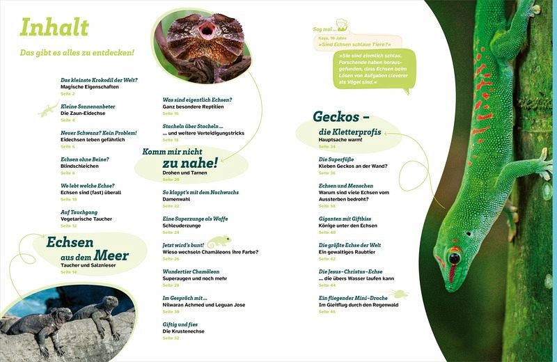 Echsen gehören zu den spannendsten und interessantesten Tieren überhaupt. Schließlich haben viele Vertreter dieser Reptilien Eigenschaften, die im Tierreich ziemlich einmalig sind. Für Geckos scheinen die Gesetze der Schwerkraft nicht zu gelten. Sie können nämlich an der Decke spazieren gehen. Stirnlappen-Basilisken wiederum können über das Wasser laufen. Chamäleons ändern blitzschnell ihre Farbe und setzen ihre lange Zunge als Waffe ein. Und damit nicht genug: Eidechsen werfen bei Gefahr problemlos ihren Schwanz ab! Welche Echse spritzt Blut aus ihren Augen und warum macht sie das? Und welche Echse ist eigentlich die schnellste? WAS IST WAS beantwortet all diese und viele weitere Kinderfragen auf Augenhöhe und zeigt die Welt der faszinierenden Tiere. Geeignet für Kinder ab 8 Jahren.