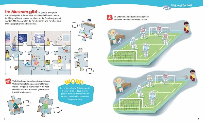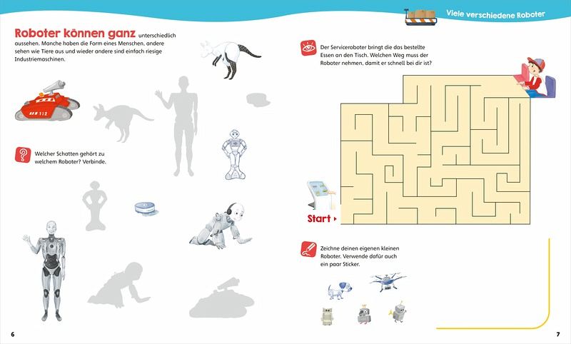 Auf in die Welt der Roboter! Mit coolen Rätsel-, Mal- und Stickeraufgaben sorgt WAS IST WAS für abwechslungsreiche Beschäftigung mit Robotern. Ein Sicherheitsroboter muss zum Ziel. Aber wie ist der Weg? Welcher Roboter kommt an welchem Arbeitsplatz zum Einsatz? Welcher Schatten gehört zu welchem Roboter? In der Erfinder-Werkstatt können Kinder mit Hilfe der Sticker ihren eigenen Roboter zusammenstellen. Diese und viele weitere spannende Aufgaben warten darauf, kreativ gelöst zu werden. Empfohlen für Roboter-Fans ab 4 Jahren.