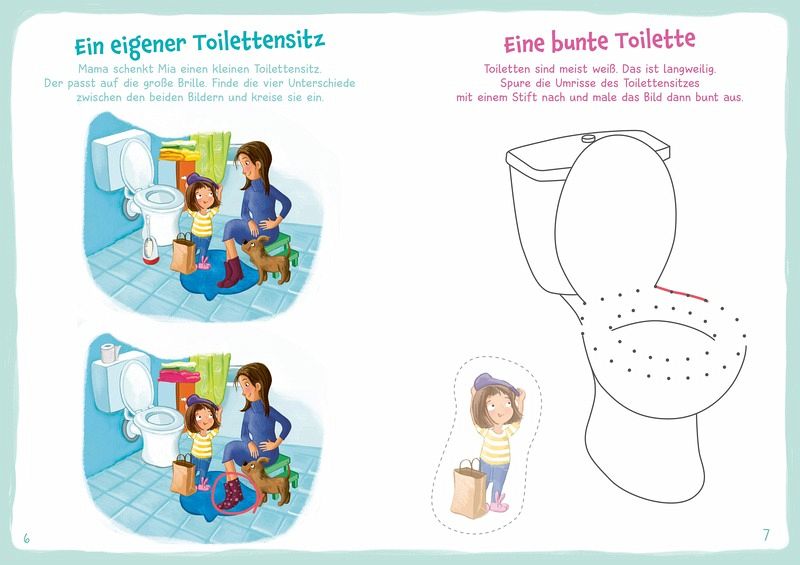 Rein ins Badezimmer und los geht's! Mit WAS IST WAS Meine Welt Mach mit! Spaß im Bad entdecken Kinder ab 3 Jahren spielerisch alles rund um das Badezimmer. Wie kommt Theo am schnellsten durch das Labyrinth hin zur Toilette? Welcher Schatten gehört zu den Gegenständen im Bad? Welche Farbe sollen die schönen Muster auf dem Toilettenpapier bekommen? Mit vielen lustigen Rätseln, Ausmalbildern und bunten Sticker lernen Kinder alles über Körperpflege, Hygiene und die Toilette - altersgerecht, unterhaltsam und leicht verständlich. Ob Zähne putzen, Hände waschen oder duschen - hier wird Alltagswissen spielerisch aufbereitet und die Neugier geweckt. Ein Heft zum Entdecken, Lernen und Mitmachen, das spielerisch wichtige Routinen stärkt und Spaß macht! Perfekt auch als Geschenk oder Mitbringsel geeignet.