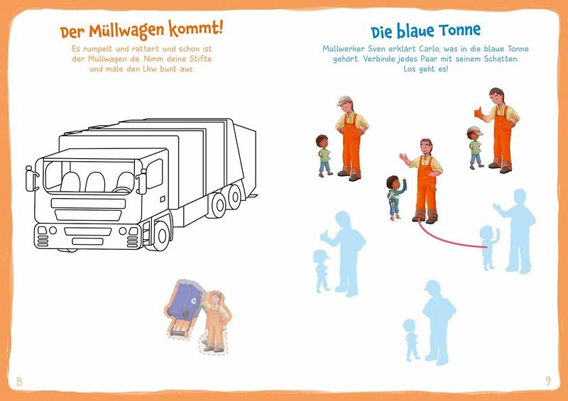 Der kleine Carlo ist auf den Spuren des Mülls unterwegs. Wohin gehört das Geschenkpapier, wenn es nicht mehr benötigt wird? Wer holt den Müll ab und was passiert dann damit? Und auch auf dem Recyclinghof gibt es viel zu entdecken. Mit Rätseln und Ausmalbildern lernen Kinder ab 3 Jahren spielerisch den Umgang mit Müll. Mit Labyrinthen, Schattenbildern und Suchbildern macht das richtig Spaß. Bunte Sticker helfen beim Lösen der Aufgaben. Eine tolle Beschäftigung für zu Hause und unterwegs.