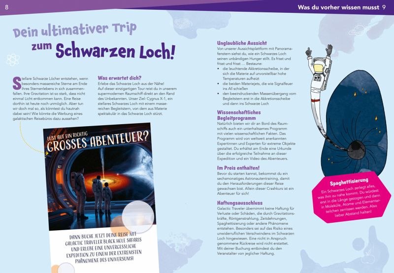 Schwarze Löcher sind ziemlich faszinierend. Sie zählen zu den extremsten Objekten im Weltall, aber es kursieren viele Missverständnisse über sie. Sind sie wirklich kosmische Staubsauger, die alles verschlucken? Oder unersättliche Monster mit unendlichem Appetit? Um Schwarze Löcher zu verstehen, benötigen wir ein paar Grundlagen: ein bisschen was von Einsteins Idee von Zeit und Raum, etwas von Newtons Gravitationsgesetz und eine Portion von Stephen Hawkings Strahlung und los geht's. Alles wird natürlich anschaulich und einfach erklärt. Und am Ende? Wissen wir, wie das mit den Schwarzen Löchern funktioniert und halten ausreichend Abstand! Geeignet für Jugendlichen und Erwachsene ab 11 Jahren.