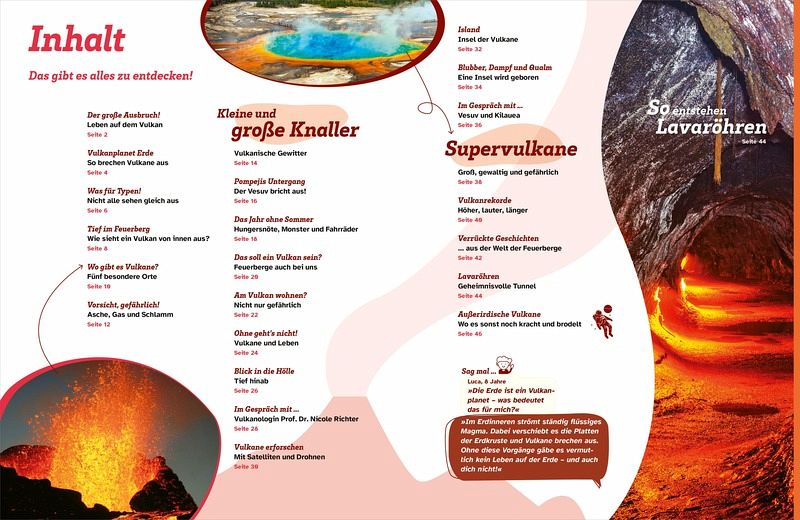 Ohne Vulkanismus gäbe es auf der Erde kein Leben! Was sind Vulkane, wie sind sie entstanden und was bedeutet es für uns Menschen, auf einem Vulkanplanet zu leben? WAS IST WAS steigt in die Vulkane hinein. Wie heiß ist es darin? Woher kommt die enorme Energie unter der Erde? Wo gibt es besonders viele Vulkane? Und wie kann ein bevorstehender Ausbruch frühzeitig erkannt werden? Diese und viele weitere Kinderfragen werden auf Augenhöhe beantwortet. Eine spannende Lesereise für Kinder ab 8 Jahren.