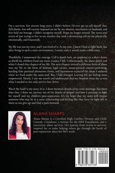 Alana Sharps is a multi-talented Business Strategist, Thought Leader, and Author. She is also a survivor of a toxic marriage tangled in narcissistic abuse. Her journey from victim to survivor inspired her to help others to overcome similar struggles, resulting in her pivoting her professional expertise toward aiding those in post-separation abuse as a Certified High Conflict Divorce and Child Custody Consultant. Navigating family court against a narcissist demands a unique skillset and Alana equips her clients for tense legal battles with individuals who refuse to negotiate or collaborate. Her own story of resilience and survival is courageously captured in her book "Was it My Fault?". Through her work, she strives to empower her clients not only to survive but to also thrive beyond expectations. Alana is a graduate of North Carolina State University with a degree in Mechanical Engineering. She is also a Six Sigma enthusiast in process improvement and has coached numerous C-Suite executives, yielding millions in corporate wide cost savings. Beyond her professional pursuits, Alana serves the community in several non-profits. She is a board member for Time4Change of NC, a mentor to women in the HER Foundation, and a member of the National Society of Black Engineers.Alana is also the mother of three and resides in Raleigh, NC with her children and two dogs.