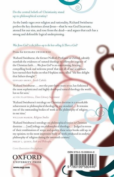 The orderliness of the universe and the existence of human beings already provides some reason for believing that there is a God - as argued in Richard Swinburne's earlier book Is There a God ? Swinburne now claims that it is probable that the main Christian doctrines about the nature of God and his actions in the world are true. In virtue of his omnipotence and perfect goodness, God must be a Trinity, live a human life in order to share our suffering, and found a church