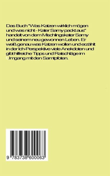 Das Buch "Was Katzen wirklich mögen und was nicht - Kater Samy packt aus" handelt von dem Mischlingskater Samy und seinem neu gewonnen Leben. Er weiß genau was Katzen wollen und erzählt in der Ich-Perspektive viele Anekdoten und gibt hilfreiche Tipps und Ratschläge im Umgang mit den Samtpfoten.
