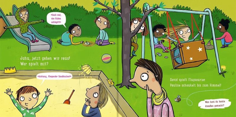 Bietet einen spielerischen Einblick in den Kita-Alltag und hilft Kindern ab 2 Jahren, Ängste vor dem ersten Kita-Tag abzubauen. Fördert durch direkte Ansprache und interaktive Fragestellungen den Dialog zwischen Kindern und Erwachsenen. Inklusive und vielfältige Darstellung von Kindern und Aktivitäten, die zur Erziehung zu Toleranz und Inklusion beiträgt. Lebendige und detailreiche Illustrationen von Meike Töpperwien, die die kindliche Fantasie anregen und zum Entdecken einladen. Vermeidet geschlechterstereotype Darstellungen und bietet ein modernes Bild von Gemeinschaft und Zusammenleben. Ideal für Kinder im Vorschulalter, um ihnen einen realistischen und positiven Eindruck vom Leben in der Kita zu vermitteln.