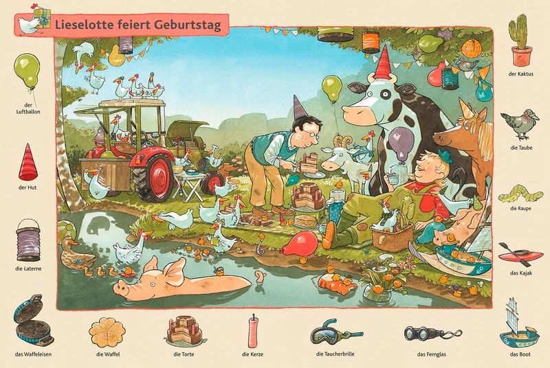 Wer findet den Luftballon bei Lieselottes Geburtstagsfest? Wer entdeckt die Zitrone in der chaotischen Küche als erster? Und wer hilft Lieselotte auf der Suche nach dem Tennisball auf dem Dachboden voller Spielsachen?