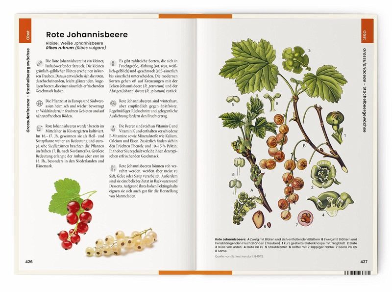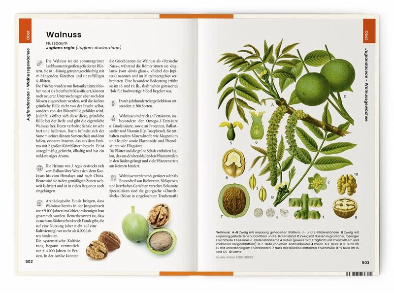 Inhalt: - ca. 350 Pflanzen; pro Pflanze 2-4 Seiten- Großformatige Illustrationen/Abbildungen mit Legende (wissenschaftlicherName, Pflanzenfamilie, deutsche Pflanzennamen, Handelsnamen,Beschreibung der Vorkommen und Anbaugebiete)- Genaue Bezeichnung der genutzten Organe (Blätter, Früchte,Samen, Knollen etc.)- Ausführlicher Text zu interessanten Aspekten wie Nutzung,Kultivierung, wirtschaftlicher Bedeutung, Anbau, Giftigkeiteinzelner Pflanzenteile etc.- 2-3 kleine Detailabbildungen zu den als Nahrungsmitteln genutztenOrganen, Sorten etc.- Mit Aussicht des Einflusses der klimatischen Veränderungenauf die jeweiligen PflanzenAufteilung: ca. 100 Obstsorten, 105 Gewürze, 90 Gemüse, 50 Sättigungsbeilagen.Weiterhin: Ölliefernde Pflanzen, Algen, Pilze, Genussmittel und Drogen, Hülsenfrüchte etc.