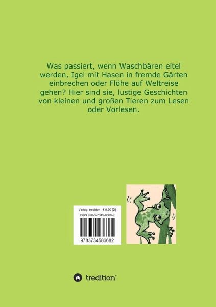Was passiert, wenn Waschbären eitel werden, Igel mit Hasen in fremde Gärten einbrechen oder Flöhe auf Weltreise gehen? Hier sind sie, lustige Geschichten von kleinen und großen Tieren zum Lesen oder Vorlesen. Die 13 liebevoll illustrierten Geschichten entführen in eine fantastische Welt, nicht ohne Gefahren, aber mit lösbaren Konflikten, die zudem die Erfahrung der tierischen Protagonisten und damit auch die des kleinen Lesers erweitern. Kleine Verse lockern die Prosa der Texte auf und laden sogar zum Singen und Auswendiglernen ein. Die Geschichten können vorgelesen werden, eignen sich durch das größere Schriftbild aber auch für die ersten eigenen Leseversuche.