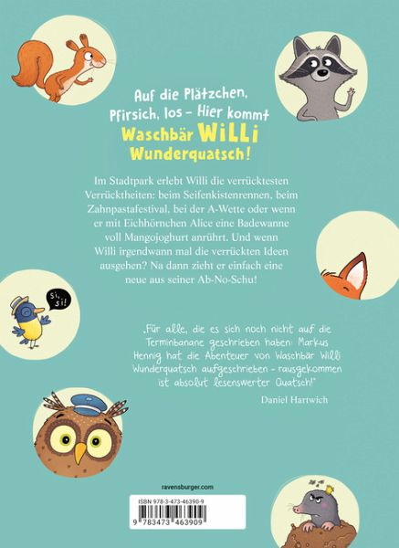 „Waschbär Willi Wunderquatsch“ ist ein zauberhaftes Kinderbuch von Markus Hennig, wundervoll illustriert von Sabine Büchner. Der Schreibstil ist locker und leicht, genau richtig für die Kleinen – und gleichzeitig so augenzwinkernd, dass auch wir Großen beim Vorlesen unseren Spaß haben. Die Illustrationen sind ein echtes Highlight: bunt, detailverliebt und wimmelnd vor lauter kleinen Gags, die man immer wieder neu entdecken kann.