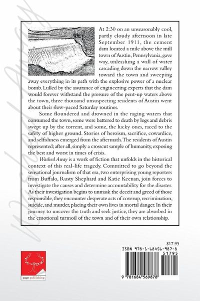 At 2:30 on an unseasonably cool, partly cloudy afternoon in late September 1911, the cement dam located a mile above the mill town of Austin, Pennsylvania, gave way, unleashing a wall of water cascading down the narrow valley toward the town and sweeping away everything in its path with the explosive power of a nuclear bomb. Lulled by the assurance of engineering experts that the dam would forever withstand the pressure of the pent-up waters above the town, three thousand unsuspecting residents of Austin went about their slow-paced Saturday routines. Some floundered and drowned in the raging waters that consumed the town, some were battered to death by logs and debris swept up by the torrent, and some, the lucky ones, raced to the safety of higher ground. Stories of heroism, sacrifice, cowardice, and selfishness emerged from the aftermath. The residents of Austin represented; after all, simply a crosscut sample of humanity, exposing the best and worst in times of crisis. Washed Away is a work of fiction that unfolds in the historical context of this real-life tragedy. Committed to go beyond the sensational journalism of that era, two enterprising young reporters from Buffalo, Rusty Shephard and Katie Keenan, join forces to investigate the causes and determine accountability for the disaster. As their investigation begins to unmask the deceit and greed of those responsible, they encounter desperate acts of coverup, recrimination, suicide, and murder, placing their own lives in mortal danger. In their journey to uncover the truth and seek justice, they are absorbed in the emotional turmoil of the town and of their own relationship.