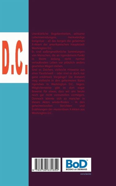 Unerklärliche Begebenheiten, seltsame Lebenswendungen, merkwürdige Ereignisse - all das bergen die geheimen X-Akten der amerikanischen Hauptstadt Washington D.C. Es sind außergewöhnliche Sammlungen von Menschen, die an irgendeinem Punkt in ihrem bislang recht normal verlaufenden Leben vor plötzlich anders verlaufenden Wegen stehen. Sind es Zeichen, vielleicht Hinweise aus einer Parallelwelt - oder sind es doch nur ganz erklärbare Vorgänge? Die Antwort mag vielleicht in den geheimsten Büros irgendwo in Washington D.C. liegen. Möglicherweise gibt es dort sogar Beweise für etwas, dass wir uns heute noch gar nicht vorzustellen vermögen. Dennoch könnte sich so mancher in diesen Akten wiederfinden - in den geheimnisvollen Berichten und Erzählungen der mysteriösen X-Akten aus Washington D.C.