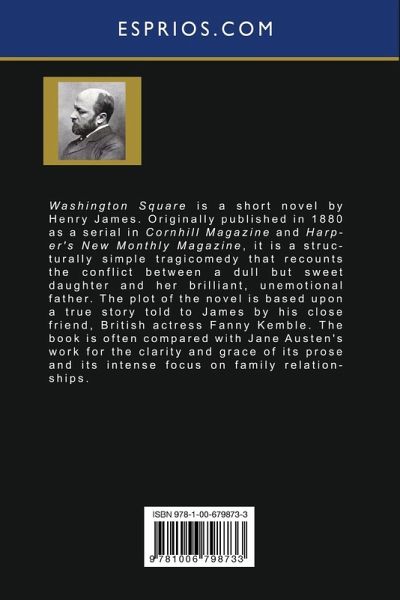 Washington Square is a short novel by Henry James. Originally published in 1880 as a serial in Cornhill Magazine and Harper's New Monthly Magazine, it is a structurally simple tragicomedy that recounts the conflict between a dull but sweet daughter and her brilliant, unemotional father. The plot of the novel is based upon a true story told to James by his close friend, British actress Fanny Kemble. The book is often compared with Jane Austen's work for the clarity and grace of its prose and its intense focus on family relationships.