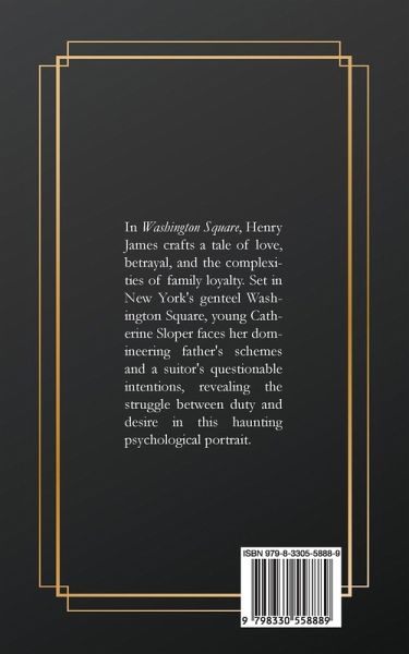 In Washington Square, Henry James crafts a tale of love, betrayal, and the complexities of family loyalty. Set in New York's genteel Washington Square, young Catherine Sloper faces her domineering father's schemes and a suitor's questionable intentions, revealing the struggle between duty and desire in this haunting psychological portrait.