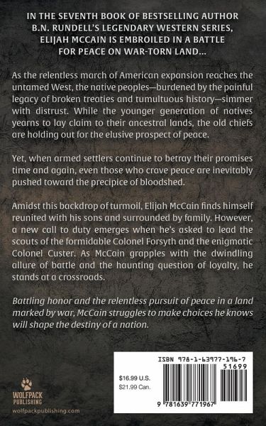 In the seventh book of bestselling author B.N. Rundell's legendary western series, Elijah McCain is embroiled in a battle for peace on war-torn land... As the relentless march of American expansion reaches the untamed West, the native peoples-burdened by the painful legacy of broken treaties and tumultuous history-simmer with distrust. While the younger generation of natives yearns to lay claim to their ancestral lands, the old chiefs are holding out for the elusive prospect of peace. Yet, when armed settlers continue to betray their promises time and again, even those who crave peace are inevitably pushed toward the precipice of bloodshed. Amidst this backdrop of turmoil, Elijah McCain finds himself reunited with his sons and surrounded by family. However, a new call to duty emerges when he's asked to lead the scouts of the formidable Colonel Forsyth and the enigmatic Colonel Custer. As McCain grapples with the dwindling allure of battle and the haunting question of loyalty, he stands at a crossroads. Battling honor and the relentless pursuit of peace in a land marked by war, McCain struggles to make choices he knows will shape the destiny of a nation.