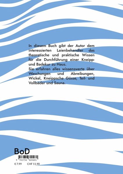 In diesem Buch gibt der Autor dem interessierten Laienbehandler das theoretische und praktische Wissen für die Durchführung einer Kneipp- und Badekur zu Haus.Sie erfahren alles wissenswerte über Waschungen und Abreibungen, Wickel, Kneippsche Güsse, Teil- und Vollbäder und Sauna.