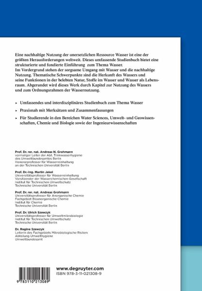 "Ein interessantes und ungewöhnliches Buch zum Thema Wasser ist vor kurzem im Verlag deGruyter erschienen. Es wendet sich hauptsächlich an Studierende in den entsprechenden Studiegängen, ist auch für den interessierten Laien."