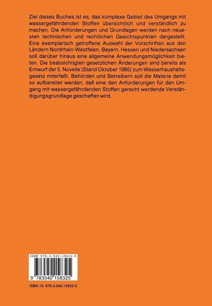 Der sachgerechte und ordnungsgemäße Umgang mit wassergefährdenden Stoffen in Gewerbe- und Industriebetrieben, aber auch in Haushaltungen, ist eine der wichtigsten Aufgaben des aktiven Umweltschutzes. Dem Wasser kommt dabei eine wesent liche Schlüsselposition auf dem langen Weg der Produktentstehung iiber Nutzung und Anwendung bis zur Beseitigung zu, da grundsätzlich jeder wassergefährdende Stoff bzw. jedes Produkt letztlich in den Wasserkreislauf gelangen kann. Die Vielzahl und das Ausmaß der 01- und Giftunfälle belegt mit Nachdruck, dass das "Vorsorgeprinzip" als Grundsatz eines wirkungsvollen Gewässerschutzes noch mehr in den Vordergrund geriückt werden muss. Über das Wasserrecht hinaus tragen viele andere Gesetze durch Aufnahme umweltrelevanter Regelungen, wie z.B. das Abfallbeseitigungsgesetz, Altolgesetz, Bundesimmissionsschutzgesetz, Waschmittelgesetz, zum Gewässerschutz bei. Mit der 4. Novelle zum Wasserhaushaltsgesetz im Jahre 1976 hat der Bundesgesetz geber in den Par. 19 g-k das Lagern, Abfiillen und Umschlagen von wassergefährdenden Stoffen und in dem Par.191 die Zulassung von Fachbetrieben speziell geregelt. Die für diesen Bereich aufgenommene allgemeine SorgfaltspfIicht lässt sich an folgenden Schwerpunkten festschreiben: - Anlagen zum Lagern und Abfüllen müssen so beschaffen und so eingebaut, aufgestellt, unterhalten und betrieben werden, dass eine Verunreinigung der Gewässer oder eine sonstige nachteilige Veränderung ihrer Eigenschaften nicht zu besorgen ist (Par.19 g Abs. 1 WHG). - Anlagen zum Umschlagen müssen so beschaffen sein und so eingebaut, aufgestellt, unterhalten und betrieben werden, dass der bestmögliche Schutz der Gewiisser vor Verunreinigungen oder sonstiger nachteiliger Veriinderung ihrer Eigenschaft erreicht wird (Par. 19 g Abs. 2 WHG).