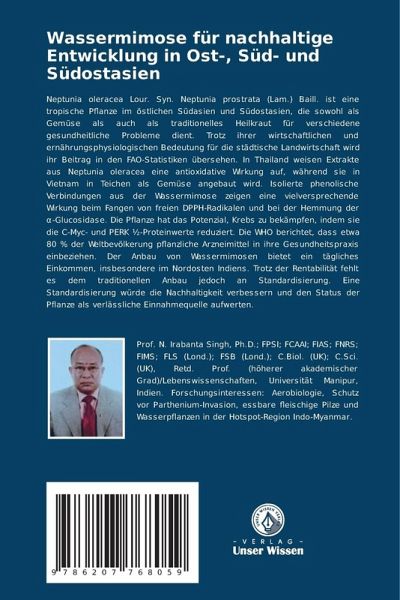 Neptunia oleracea Lour. Syn. Neptunia prostrata (Lam.) Baill. ist eine tropische Pflanze im östlichen Südasien und Südostasien, die sowohl als Gemüse als auch als traditionelles Heilkraut für verschiedene gesundheitliche Probleme dient. Trotz ihrer wirtschaftlichen und ernährungsphysiologischen Bedeutung für die städtische Landwirtschaft wird ihr Beitrag in den FAO-Statistiken übersehen. In Thailand weisen Extrakte aus Neptunia oleracea eine antioxidative Wirkung auf, während sie in Vietnam in Teichen als Gemüse angebaut wird. Isolierte phenolische Verbindungen aus der Wassermimose zeigen eine vielversprechende Wirkung beim Fangen von freien DPPH-Radikalen und bei der Hemmung der -Glucosidase. Die Pflanze hat das Potenzial, Krebs zu bekämpfen, indem sie die C-Myc- und PERK ½-Proteinwerte reduziert. Die WHO berichtet, dass etwa 80 % der Weltbevölkerung pflanzliche Arzneimittel in ihre Gesundheitspraxis einbeziehen. Der Anbau von Wassermimosen bietet ein tägliches Einkommen, insbesondere im Nordosten Indiens. Trotz der Rentabilität fehlt es dem traditionellen Anbau jedoch an Standardisierung. Eine Standardisierung würde die Nachhaltigkeit verbessern und den Status der Pflanze als verlässliche Einnahmequelle aufwerten.
