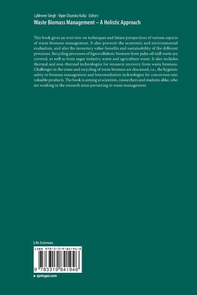 This book gives an overview on techniques and future perspectives of various aspects of waste biomass management. It also presents the economic and environmental evaluation, and also the monetary value-benefits and sustainability of the different processes. Recycling processes of lignocellulosic biomass from palm oil mill waste are covered, as well as from sugar industry waste and agriculture waste. It also includes thermal and non-thermal technologies for resource recovery from waste biomass. Challenges in the reuse and recycling of waste biomass are discussed, i.e., the hygienic safety in biomass management and bioremediation technologies for conversion into valuable products. The book is aiming at scientists, researchers and students alike, who are working in the research areas pertaining to waste management