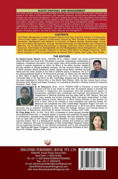 This book provides comprehensive coverage of the fundamental principles and current practices and trends in the field of waste generation and disposal practices, environmental pollution, ecological changes and solid waste management. This book updates the subject matter, illustrations and problems to incorporate new concepts and issues related to waste disposal, waste minimization, resource recovery from waste, recycling of waste, ecological stress and solid waste management (SWM).