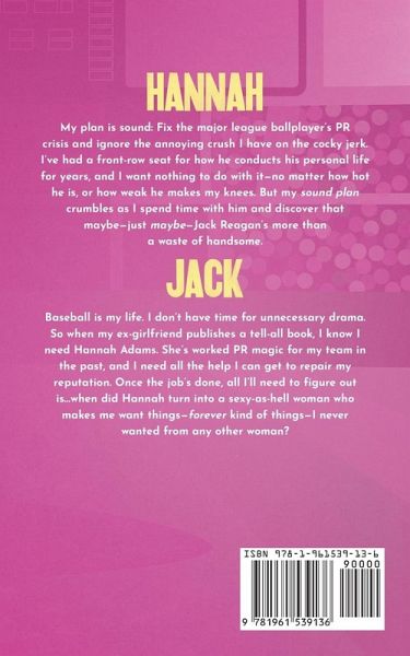 Jack Baseball is my life. I don't have time for unnecessary drama. So when my ex-girlfriend publishes a tell-all book, I know I need Hannah Adams. She's worked PR magic for my team in the past, and I need all the help I can get to repair my reputation. Once the job's done, all I'll need to figure out is...when did Hannah turn into a sexy-as-hell woman who makes me want things-forever kind of things-I never wanted from any other woman? Hannah My plan is sound: Fix the major league ballplayer's PR crisis and ignore the annoying crush I have on the cocky jerk. I've had a front-row seat for how he conducts his personal life for years, and I want nothing to do with it-no matter how hot he is, or how weak he makes my knees. But my sound plan crumbles as I spend time with him and discover that maybe-just maybe-Jack Reagan's more than a waste of handsome.