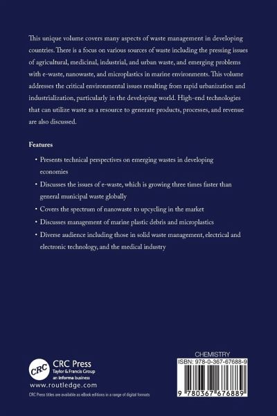 Chapter 1 Waste Management Challenges in Developing Countries Chapter 2 Management of Medical Waste: New Strategies and Techniques Chapter 3 Management of E-waste Chapter 4 Management of Marine Plastic Debris and Microplastics Chapter 5 Nanowaste Management Chapter 6 Microbiology of Wastewater Management; Challenges, Opportunities and Innovations Chapter 7 Phytoremediation: A Green Tool to Manage Waste Chapter 8 Green Chemistry and Its Applications in Waste Management Chapter 9 Bioenergy and Biofuels from Wastes: Perspectives from Developing Nations Chapter 10 Upcycling: A New Perspective on Waste Management in a Circular Economy