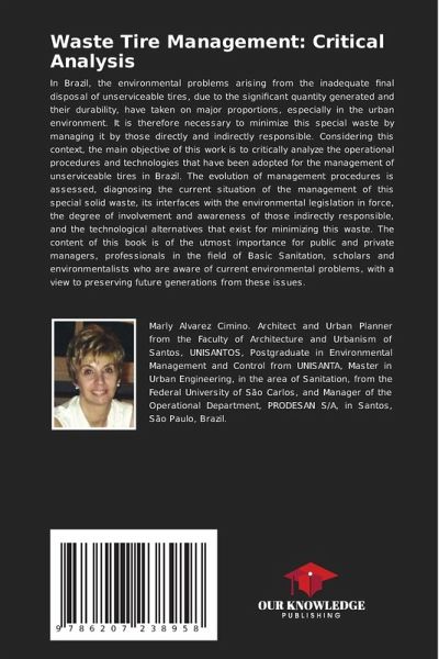 In Brazil, the environmental problems arising from the inadequate final disposal of unserviceable tires, due to the significant quantity generated and their durability, have taken on major proportions, especially in the urban environment. It is therefore necessary to minimize this special waste by managing it by those directly and indirectly responsible. Considering this context, the main objective of this work is to critically analyze the operational procedures and technologies that have been adopted for the management of unserviceable tires in Brazil. The evolution of management procedures is assessed, diagnosing the current situation of the management of this special solid waste, its interfaces with the environmental legislation in force, the degree of involvement and awareness of those indirectly responsible, and the technological alternatives that exist for minimizing this waste. The content of this book is of the utmost importance for public and private managers, professionals in the field of Basic Sanitation, scholars and environmentalists who are aware of current environmental problems, with a view to preserving future generations from these issues.