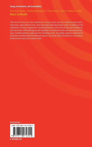 Introduction to Waste to Wealth.- Biopolymers from Wastes to High Value Products in Biomedicine.- Biosurfactants from Processed Wastes.- Synthesis of Value Added Biomimetic Material of Hydroxyapatite using Aqueous Calcereous Fish Wastes.- Utilization of Crude Glycerol from Biodiesel Industry for the Production of Value added Bioproducts.- Utilization of Citrus Waste Biomass for Antioxidant Production by Solid-State Fermentation.- Coffee Husk: A Potential Agro-Residue for Bioprocess.- Sustainable Valorization of Seafood Processing By-Products/Discards.- Bioeconomy and Biorefinery: Valorization of Hemicellulose from Lignocellulosic Biomass and Potential Use of Avocado Residues as a Promising Resource of Bioproducts.- Land Applications of Biochar: An Emerging Area.- Vermicomposting: A Green Technology for Organic Waste Management.- Bioelectricity Generation from Organic Wastes.- Economics of Solid Waste Management.- Biodiesel from Microalgae.- Food Waste Volarization by Microalage.- HighValue Co-Products from Algae- An Innovational Way to Deal with Advance Algal Industry.- Wastewater Algae to Value Added Products.- The Pretreatment Technologies for Deconstruction of Lignocellulosic Biomass.- Bioethanol Production from Sugarcane Green Harvest Residues using Auxin Assisted Pretreatment.- Cellulosic Biomass Hydrolyzing Enzymes.- Consolidated Bioprocessing at High Temperature.- Wastes Valorization to Fuel and Chemicals through Pyrolysis: Technology, Feedstock, Products and Economic Analysis.
