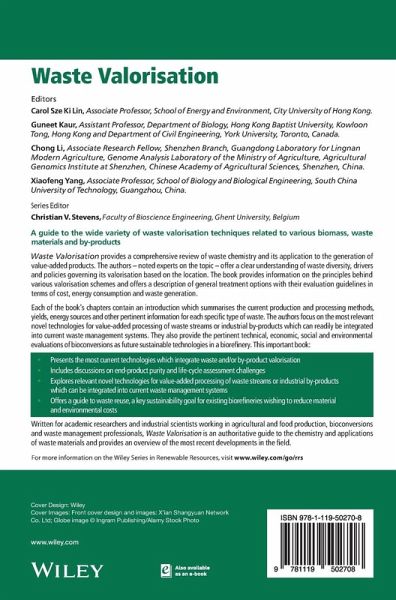 Waste Valorisation provides a comprehensive review of waste chemistry and its application to the generation of value-added products. The authors - noted experts on the topic - offer a clear understanding of waste diversity, drivers and policies governing its valorisation based on the location. The book provides information on the principles behind various valorisation schemes and offers a description of general treatment options with their evaluation guidelines in terms of cost, energy consumption and waste generation.