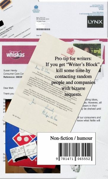 From the unstable mind who brought you 'im fine' - Matt Shaw is 'Wasting Stamps'. Between writing successful novels and cartooning - Matt Shaw has another hobby. A far more irritating one - at least, irritating if you're one of the victims of his hobby.... writing random, quirky and slightly bonkers letters to big corporations and well-known public images just to see if he can get a rise from them. From British Gas to Mates Condoms, Lynx Deodorants and even the Prime Minister and The Queen - no one is safe from Matt Shaw's twisted (and often relentless) questions!